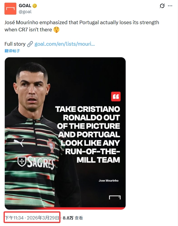 穆帅称C罗不在时葡萄牙普通球队?最早球迷发、无来源 大概率杜撰